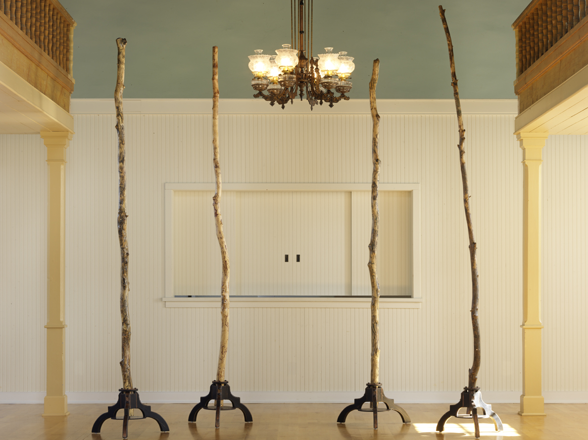 And—as any deep contemplation of the modern landscape is connected to the energy of earlier human interventions—Rossi thought it fitting to distill and shape her inquiry for presentation in the chapel itself. The chapel preservation board agreed to her proposal and, in October of 2017, Rossi installed a mixed-media exhibition that she called “Photosynthesis”.